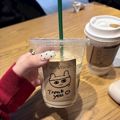 こんばんは にこです🙋🏻♀️ 今日スタバ行ったとき わたしのカバンについてるたまごっちを見て 店員さんが反応してくれて 盛り上がっちゃったー😹 いま◯◯っちなので ◯◯っちに成長するように育ててます! え!わたし今◯◯っちです! とか言って会話して 数分だったけど 楽しかったー✨ そのあとパッてコップみたら まめっち書いてあってびっくり! 外出てしばらく経ってから気付いた🙍🏻♀️ 一瞬で描けちゃう画力とセンスの天才でした🫵🏻 久々スタバ美味しかった〜 DD営業中です 是非🫵🏻